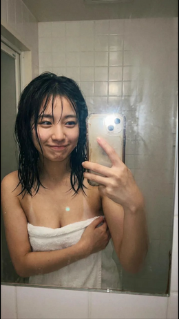 素肌にタオル1枚纏って