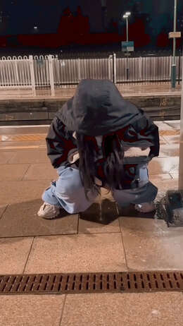 男性の目も気にせずに駅のホームでションベンするC国娘…