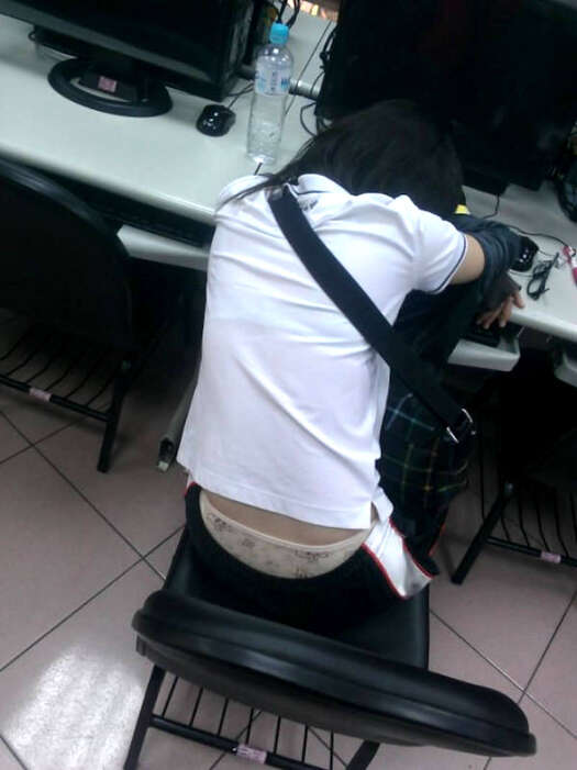 いわゆる腰パンチラ、毛貧。