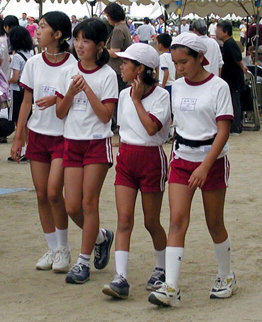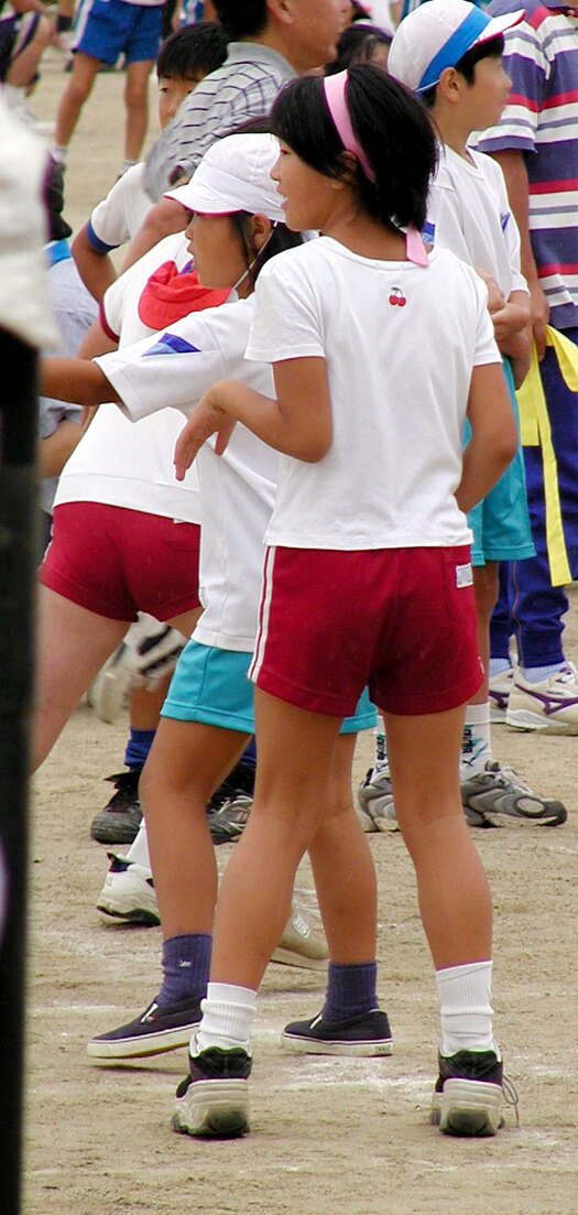 ブルマでなし、私服でなし、体操服の短パン。